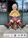 In celebration of Oor Wullie's 80th anniversary in 2016, he was the subject of a public art project when 55 decorated 5 ft sculptures of him were placed around Dundee and its environs with another 13 touring round Scotland over an 8-week period. The Bucket Trail was the largest mass public art project to have taken place in Scotland.[12] The project ran from 27 June for two months, with the sculptures being auctioned in September for £883,000,[13] for a new pediatric surgical suite at Tayside Children's Hospital.[14] In 2019 Oor Wullie's BIG Bucket Trail 2019 was launched with 200 artistic interpretations of the figure at locations in cities across Scotland,[15] raising money for Edinburgh Children's Hospital, Glasgow Children's Hospital and the Archie Foundation.[16]
