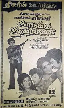 Oorukku Uzhaippavan (transl. Worker for the country) is a 1976 Indian Tamil-language film written and directed by M. Krishnan Nair, starring M. G. Ramachandran, Vanisri and Venniradai Nirmala. It is a remake of the 1970 Kannada film Baalu Belagithu.[1] The film was released on 12 November 1976.[2][3]