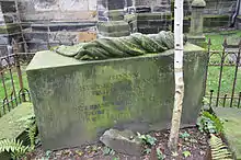 But over the years, a birch tree has sprouted in the plinth and, growing ever larger, lifted the heavy tombstone. Thus, despite the command of the grave's inscription, the tomb is now "open".[4]