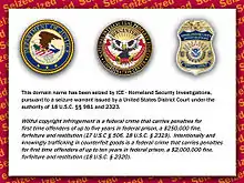- ↑ "Illegal websites seized in global operation" (Press release). U.S. Immigration and Customs Enforcement. U.S. Immigration and Customs Enforcement. 2015-11-30. Retrieved 2019-06-20.