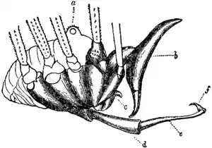 Anatomy of Phalangium cornutum. d, Sheath of penis. e, penis.