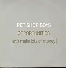 "Opportunities (Let's Make Lots of Money)" is a song by English synth-pop duo Pet Shop Boys from their debut studio album, Please (1986). It was released as a single in 1985 and re-recorded and reissued in 1986, gaining greater popularity in both the United Kingdom and United States with its second release, reaching number 11 on the UK Singles Chart and number 10 on the US Billboard Hot 100. After a Super Bowl ad in February 2021, featuring the song, it re-entered the charts claiming the Billboard Dance/Electronic Digital Songs No. 1 spot on 27 February, 2021, among others.