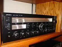 During this period Optonica still offered analog AM-FM tuners and amplifiers, but they were being eliminated, especially the high-powered and expensive models. The new digital tuners and amps were now offered with a Toroidal power transformer that allowed for high performance in a smaller size, offering two to three times the capacity of conventional transformers. This allowed for the new digital tuners and receivers to be much smaller in size, compared with the conventional line of analogue receivers, amps and tuners. Model numbers consisted of ST-7405 and ST-4405 for tuners and SM-7305 and SM-4305 for amplifiers. One notable product offering was SM-9005. An integrated amplifier featuring a new zero-switching direct coupled amp circuitry with 0% switching distortion.[6] This amplifier produced 100 watts minimum RMS per channel into 8 ohms from 20 Hz to 20 kHz with no more than 0.0095% THD!.[7]