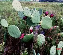 Opuntia anahuacensis is a cactus species in the genus Opuntia of the family Opuntioideae. It grows along the Gulf Coast of Texas, and perhaps northern Mexico.[1] The plants are short, perhaps 1- or 2-ft tall, but they are wide. Some thickets may be 20- to 40-ft across and composed of multiple plants. The fruit is purplish. The cladodes are uniquely shaped, obovate with a neck. The original description claimed the plants were yellowish green, but they may be green or rarely blue-green.[2]