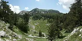 The Opuvani do (Serbian: Windy valley) is a sinkhole at the northern slope of the Velika Jastrebica in the Orjen mountain range located in Montenegro. It creates a major refugium to arcto-alpine and alpine biota in a region with warm winters. As the 60 m deep sinkhole is prone to cold-air pooling, frequent freeze-thaw cycles create favourable conditions for periglacially formed features (i.e. solifluction, periglacially patterned ground).[1] The sinkhole is at 1584 m elevation and consists of 4 interconnected sinks. The major sink is laterally elongated, 440 m long. The outflow of the cold air is at 1647 m and the depth of the basin atmosphere is 63 m.