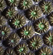 Orbicella faveolata is related to the coral species lobed star coral (Orbicella annularis[7]) and the species boulder star coral (Orbicella franksi[8]) which both live in the Caribbean Sea and the Gulf of Mexico in areas such as the Bahamas and Bermuda.[9] The species Paramontastraea saleborsa and Astrea curta have similarly sized corallites. The species P. saleborsa was also formally placed in the coral genus Montastraea.[10]