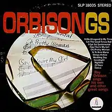 Orbisongs is a compilation LP released by Monument Records in 1965 after Roy Orbison had left the label and joined MGM. It features tracks such as the stereo version of "Oh, Pretty Woman", a different version of "Dance", and the unreleased "I Get So Sentimental."[1]