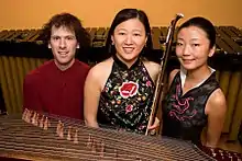 ![]() Left to right - Jonathan Bernard (percussion), Lan Tung (erhu), and Bei Bei He(zheng) | |