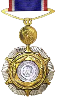 The Order of Merit (Arabic: نوط الجدارة, romanized: nawṭ al-jadāra) or Order of Distinction is a state decoration of Sudan established on 16 November 1961 during Ibrahim Abboud's military government. It is given to government officials for long service and performance with honesty, devotion, and excellent character. These officials might be either Sudanese or foreigners.[1] Order have gold[2][3] silver[4] and bronze[5][6] classes. It had an associated medal.[7][8]