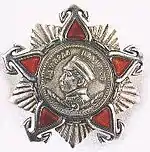 The Order of Nakhimov (Russian: орден Нахимова) is a military decoration of the Russian Federation named in honour of Russian admiral Pavel Nakhimov (1802–1855) and bestowed to naval officers for outstanding military leadership. The order was established during World War II by decree of the Presidium of the Supreme Soviet of the USSR of March 3, 1944.[1] Following the 1991 dissolution of the USSR, the Order of Nakhimov was retained unchanged by decision of the Supreme Soviet of the Russian Federation № 2424-1 of March 2, 1992[2] but it was not awarded in this form. The all encompassing Decree of the President of the Russian Federation № 1099 of September 7, 2010[3] that modernised and reorganised the entire Russian awards system away from its Soviet past amended the Order of Nakhimov to its present form, a ribbon mounted single class Order.