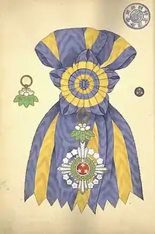 Grand Cordon included Daesu which was worn from the left to the right and medal was worn on the left breast.[2]