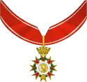 The order had the usual five degrees. There was a special collar for heads of state and two medals were attached to this order of merit. The ribbon was red with a white border.