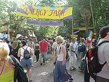 The fair is a family event with face painting, puppet shows, and music for children. Toplessness is permitted while full nudity is not allowed during public hours in public areas.[14] No alcohol is allowed, and smoking is limited to designated areas. All glass bottles are banned from the fairgrounds in an attempt to protect the safety of shoeless fairgoers, and to preserve the integrity of the land. The fair has its own water and communications systems, recycling service, emergency medical team, traffic control, and security team. Since 1997 there has been a strong effort to make it a drug-free event.