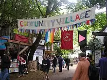 The Oregon Country Fair (OCF) is a nonprofit organization and an annual three-day art and music fair held outside the city limits of Veneta, Oregon, United States. Located in the Willamette Valley, the site is about 13 miles (21 km) west of Eugene along the Long Tom River near the unincorporated community of Elmira. Annual attendance is approximately 35,000,[1] and the fair has around 960 craft and food booths each year.[2] The event is known as an outgrowth of the counter-culture movement and for using environmentally-friendly practices during the fair.[2][3]