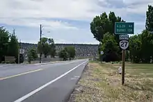 Oregon Route 27 is an Oregon state highway located in Deschutes County and Crook County. OR 27 traverses the Crooked River Highway No. 14 of the Oregon state highway system.[3] Known as the Lower Crooked River Back Country Byway, OR 27 has the distinction of being one of the only state highways in Oregon which is partially paved: out of its 44.79-mile (72.08 km) total length, an 18.5-mile (29.8 km) stretch of the highway is gravel.