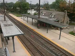 Oreland station is a railroad station along the SEPTA Lansdale/Doylestown Line near Philadelphia, Pennsylvania, USA. The station, located at the intersection of Bridge Street and Bruce Road, includes a 99-space parking lot. In FY 2013, Oreland station had a weekday average of 276 boardings and 256 alightings.[2] The current station was built by the Reading Railroad (RDG) in 1931, as a replacement for a station built in 1890.[3]
