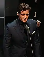 Bloom's first appearance on the screen was in a small role, as a rent boy, in the 1997 film Wilde. Two days after graduating from Guildhall in 1999,[22] he was cast in his first major role, playing Legolas in The Lord of the Rings film trilogy (2001–2003).[20] He had originally auditioned for the part of Faramir, who does not appear until the second movie, but the director, Peter Jackson, cast him as Legolas instead. While shooting a scene, he broke a rib after falling off a horse, but eventually recovered and continued shooting.[23] At the same time, Bloom also played a brief role in Ridley Scott's war film Black Hawk Down as PFC Todd Blackburn. In 2002, he was chosen as one of the Teen People "25 Hottest Stars Under 25", despite him having turned 25, and was named People's hottest Hollywood bachelor in the magazine's 2004 list.[20] All members of the cast of the Rings films were nominated for Best Ensemble Acting at the Screen Actors Guild Awards for three years in a row, finally winning in 2003 for the third film, The Lord of the Rings: The Return of the King. Bloom has also won other awards, including European Film Awards, Hollywood Festival Award, Empire Awards and Teen Choice Awards, and has been nominated for many others. Most of Bloom's box office successes have been as part of an ensemble cast.[24]