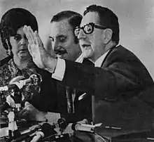 Marcos Orlando Letelier del Solar (13 April 1932 – 21 September 1976)[1] was a Chilean economist, politician and diplomat during the presidency of Salvador Allende. A refugee from the military dictatorship of General Augusto Pinochet, Letelier accepted several academic positions in Washington, D.C. following his exile from Chile. In 1976, agents of Dirección de Inteligencia Nacional (DINA), the Pinochet regime's secret police, assassinated Letelier in Washington via the use of a car bomb. These agents had been working in collaboration with members of the Coordination of United Revolutionary Organizations, an anti-Castro militant group.[2]