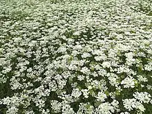 Orlaya grandiflora, the white laceflower, is a species of flowering plant in the family Apiaceae, native to Mediterranean Europe. Growing to 90 cm (35 in), this is a multi-branched annual with divided ferny leaves, and flattish panicles of pure white flowers over a long period in summer.[1] The uneven size of the individual florets gives it the appearance of lace, especially when planted in large swathes.