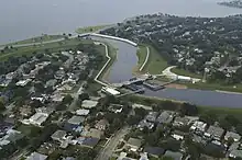 The Orleans Canal is a drainage canal in New Orleans, Louisiana. The canal, along with the 17th Street Canal and the London Avenue Canal, form the New Orleans Outfall Canals. The current version of the canal is about 2 km long, running along the up-river side of City Park, through the Lakeview and Lakeshore neighborhood, and into Lake Pontchartrain. It is part of the system used to pump rain water out of the streets of the city into the Lake. The Canal has also been known as the Orleans Avenue Canal, the Orleans Outfall Canal, the Orleans Tail Race, and early on, the Girod Canal.