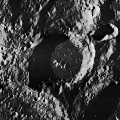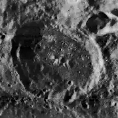Orlov is a lunar impact crater. It is located on the Moon's far side, to the northeast of the larger crater Leeuwenhoek. To the north-northwest of Orlov is De Vries, and to the east-southeast is Rumford.
