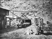 Campbell sold the Orme operation in 1905, and the new owners renamed the company, "Battle Creek Coal and Coke Company." By 1912, the operation consisted of four drift mines,[8] some reaching high up the walls of the Cumberland Plateau. Mule-drawn rail cars carried the mined coal to the mine entrances, where it was transferred to a locomotive. The locomotive then carried the coal to an upper tipple, which in turn transferred it to a lower tipple. At its height, the mining operation was shipping 1,000 tons of coal per day out of the valley.[6] The operation was known for its "good coal, inaccessibility, irregular stratification, and consequently difficult mining."[8]