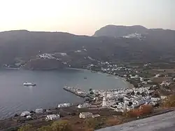 Ormos Egialis (Greek: Όρμος Αιγιάλης, pronounced [ˌormos eˈʝalis]) is also called Aegiali (Greek: Αιγιάλη, [eˈjali]) and is the second port of Amorgos. It is set in a large sweeping bay, providing a view from Tholaria and the Aegialis Hotel above. There are frequent ferries to and from Piraeus, as well as a daily ferry to Naxos.