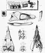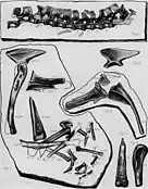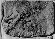 "Dasygnathus" longidens was in 1877 created by Thomas Huxley for a right maxilla from the Lossiemouth Sandstone found in 1857. The genus name Dasygnathus had already been used for a coleopteran insect, so Huxley's generic name was in 1961 changed to Dasygnathoides. Although synonymized with Ornithosuchus by Walker (1964), a 2016 study found Dasygnathoides indeterminate beyond Pseudosuchia. The maximal length of Ornithosuchus was revised to 2.2 m.[2]