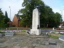 Orpington War Memorial standing at the end of the High Street is a focal point for Remembrance Sunday.[46] It was designed by local architect Charles Heaton Comyn and unveiled on Sunday 28 August 1921.[47] It originally contained the names of 111 local men who died in the Great War, however further names were added later, bringing the total for the Great War up to 117.
