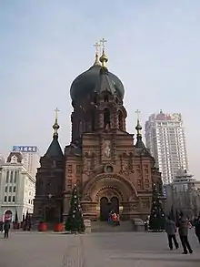 A diocese with a cathedra was established in Harbin, for the Orthodox diaspora which had appeared in the territory of Manchuria after the Russian Revolution. The ruling bishop was assigned a title: bishop of Harbin and Tsitsikarsky.[2] The Harbin diocese was independent of the Russian Spiritual Mission in Beijing and was directly subordinate to the Synod of Bishops of the Russian Orthodox Church Abroad.[3]