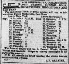 - ↑ "New Stage Line". Monmouth Inquirer. August 24, 1843.