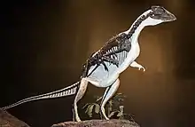 Oryctodromeus was originally described as lacking ossified tendons in the tail. However, specimens from the Wayan Formation demonstrate the presence of a thick tendon lattice in the dorsal, sacral, and caudal columns of some specimens; perhaps indicating more flexibility in ossified tendons than has previously been supposed.[1] Adaptations in the jaws, forelimbs, and pelvis were described in the Blackleaf specimens that could have helped move and manipulate soil.[2]