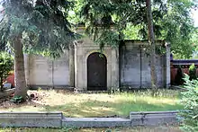 Oscar Huldschinsky was buried as a Jew in the New Cemetery in Wannsee. His grave in a family crypt of Otto Stahn has been preserved.[12] While he was still alive, he applied for Jews to be buried in this cemetery.[13] His son Paul was interned in the concentration camp in Sachsenhausen in November 1938. After his release, Paul Huldschinsky and his family fled to the US, where he settled in Santa Monica, west of Los Angeles, and became part of the German-speaking community in exile there.[14] His daughter, Susanne (née Reichenheim), died trying to arrange the escape of her family from Nazi Germany. Huldshinsky's favorite granddaughter Anna-Susanne Sommer (née Reichenheim) was artistically gifted. On his death Hulschinky left her and the other four grandchildren 66,000 RM each as well as artworks from his collection. In 1937, the Gestapo arrested Anna-Susanne's husband, Hans, who worked in film, as he performed on the Scala Theatre stage, demanding that he divorce his Jewish wife, which he refused to do. Persecuted and plundered by the Nazis because of their Jewish heritage, most of the family managed to escape to the United States. The book Lost Lives, Lost Art: Jewish Collectors, Nazi Art Theft, and the Quest for Justice devotes a chapter to them entitled, "Oscar Huldschinsky (1846-1931) and Ann Sommer (1910-2009)" [15][16]