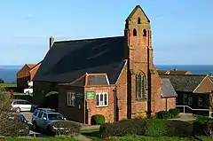 Approximately 3 miles (4.8 km) south of Scarborough off the coastal road, Osgodby was a medieval village with a manor house mentioned in the Domesday Book as Asgozbi ('Asgaut's farm or estate'). It appears to have grown until the 13th or 14th century and then declined to a sparsely populated farming area by the 19th century. Housing was developed east of the medieval site in the 1930s and again from the 1960s, with buildings of farms on the site of the manor house being converted into a pub and a restaurant. The oldest surviving building is Stuart House, dated 1615. Remnants of a 13th-century chantry chapel of St Leonard have been incorporated into a barn.[2][3]