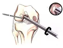 - ↑ Anderson AF, Richards DB, Pagnani MJ, Hovis WD (June 1997). "Antegrade drilling for osteochondritis dissecans of the knee". Arthroscopy. 13 (3): 319–24. doi:10.1016/S0749-8063(97)90028-1. PMID 9195028.
