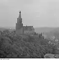 Its 54-metre-high bergfried is the third highest and one of the oldest surviving bergfrieds in Germany. Above its second array of battlements there is a watchman's parlour, which accommodated a watchman until 1917. On the terrace there is a monument which records that this was the furthest south that the ice sheet came in Germany during the Elster glaciation.