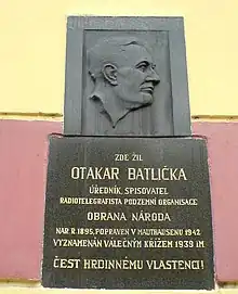 Otakar Batlička (12 March 1895, Prague, Czech Republic (then part of the Kingdom of Bohemia in Austria-Hungary) – 13 February 1942, Mauthausen-Gusen concentration camp) was a Czech adventurer, journalist, ham (amateur) radio operator, and member of the Czech-based Nazi resistance group Obrana Národa during World War II.