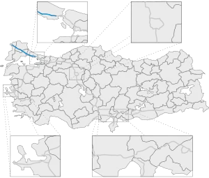 Otoyol 3 (English: Motorway 3), also known as the European Motorway (Turkish: Avrupa Otoyolu) and abbreviated as the O-3 is a 245.1 km (152.3 mi) long otoyol in East Thrace, Turkey. The O-3 runs from Edirne to Istanbul and is the only motorway in Turkey located entirely in Europe. The motorway begins west of Edirne at a junction with the D.100 where it then continues as a beltway passing just north of Edirne. From there, the motorway passes through mostly rural farmland until it enters the Istanbul metropolis near Silivri. The eastern end of the O-3 is at the interchange with the O-1, where the motorway becomes Vatan Caddesi and continues into the historic peninsula of Istanbul as a major boulevard.