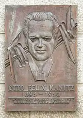 A plaque dedicated to Kanitz has been placed on the back of the Austrian Parliament Building in Vienna, and a street in Vienna's 23. district bears his name. Whether the grave with his name really contains his ashes is uncertain.[3]