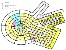 One of the Benfey's publications in Chemistry was a model of an extended periodic table, sometimes referred to as the periodic snail. First published in 1964, it explicitly showed the location of lanthanides and actinides. The elements form a two-dimensional spiral, starting from hydrogen, and folding their way around two peninsulars, the transition metals, and lanthanides and actinides. A superactinide island is already slotted in.[10]