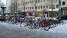 Even in winter, bicycle commuting remains strong in Oulu, in spite of the cold, dark, and snow. About 12% of winter trips are by bicycle, and about half of trips to school or university are. The city has a robust system for keeping bike paths maintained and clear of snow, and bike paths and lanes are plowed before roadways to encourage such human-scale winter transit in the city where 12% already do so.[49] The Winter Cycling Federation was founded in Oulu in 2013, and the first Winter Cycling Congress was held there.[50]