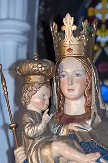 Our Lady of Aberdeen is a type of Madonna and Child statuettes copied from the Notre Dame du Bon Succès statuette located in Brussels. Such replicas are to be found across the North East of Scotland.