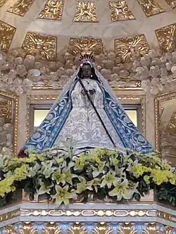 Our Lady of Peace and Good Voyage (Spanish: Nuestra Señora de la Paz y Buen Viaje; Filipino: Mahal na Birhen ng Kapayapaan at Mabuting Paglalakbay), also known as Our Lady of Antipolo and the Virgin of Antipolo (Filipino: Virgen ng Antipolo), is a seventeenth-century Roman Catholic wooden image of the Blessed Virgin Mary as venerated in the Philippines. This Black Madonna is enshrined in Antipolo Cathedral in the Sierra Madre mountains east of Metro Manila.[1]