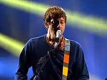 "Out of Time" was performed by Blur on television shows such as CD:UK,[51] Top of the Pops[52] and Friday Night with Jonathan Ross in 2003.[53] The song was also performed during a series of shows in London Astoria in May 2003,[54] as well on the international tour supporting Think Tank.[55] According to Nick Cowen from The Daily Telegraph, the performance was "one particularly sweet moment" from the show.[56] The band performed the song during a series of two shows at London's Hyde Park on 3–4 July 2009.[57] It was also performed at Blur's concert directly after the 2012 Summer Olympics closing ceremony on 13 August 2012 in London.[58] "Out of Time" was added to the setlist of the tour in support of their eighth studio album The Magic Whip in 2015[59] and the band also performed it at their two Wembley Stadium shows in July 2023.