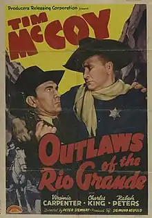 Outlaws of the Rio Grande is a 1941 American Western film directed by Sam Newfield and written by George H. Plympton. The film stars Tim McCoy, Virginia Carpenter, Charles King, Ralph Peters, Karl Hackett and Rex Lease. The film was released on February 26, 1941, by Producers Releasing Corporation.[1][2][3]