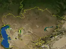 - ↑ Kazakhstan borders the Caspian Sea and the Aral Sea, remnants of the ancient Paratethys Sea.