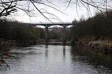Outwood Viaduct is a Grade II listed railway viaduct crossing the River Irwell in Radcliffe, Greater Manchester. Following a period of disuse, it was restored and opened to the general public as a footpath.