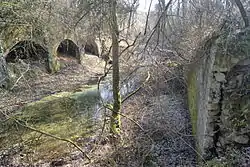The Fort de Boussois, also known as the Fort de Kilmaine, was built between 1881 and 1883 as part of the Séré de Rivières system of fortifications. It overlooks the valley of the Sambre. The pentagonal fort is surrounded by a ditch defended by caponiers and counterscarps. The fort featured a Mougin turret with two 155mm guns. A cavalier, or elevated surface for artillery, surmounts the reinforced barracks. Underground galleries link the salients, caponiers and counterscarps to the central portions of the fort.[1]