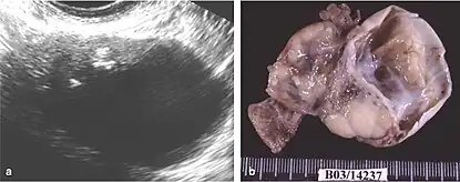 - ↑ Fischerova, Daniela; Burgetova, Andrea (2014-07-01). "Imaging techniques for the evaluation of ovarian cancer". Best Practice & Research Clinical Obstetrics & Gynaecology. Imaging in Gynaecology. 28 (5): 697–720. doi:10.1016/j.bpobgyn.2014.04.006. ISSN 1521-6934. PMID 24846098.