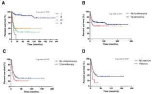 Ovarian squamous cell carcinoma typically presents with a mean tumor size of 14.8 cm, and overall survival does not vary based on tumor size.[8] Clinical manifestations include abdominal pain and a palpable abdominal mass. The cancer stage is correlated with the time of diagnosis, revealing that higher stages and delayed diagnoses are associated with a worse prognosis.[8][6][2] Hysterectomy reduces the risk of death, while lymphadenectomy does not demonstrate improved survival. Fertility-sparing surgery shows no difference in mortality compared to radical surgery in patients under 45.[12] Adjuvant chemotherapy enhances survival in advanced stages, with platinum-based chemotherapy[24] linked to a better prognosis. Radiotherapy and chemoradiotherapy do not improve survival.[3][6]